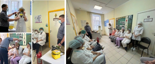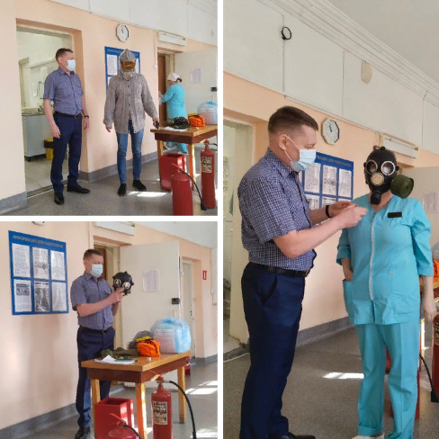 4 апреля Юрий Вениаминович Смагин провел очередное занятие по гражданской обороне с изучением средств индивидуальной защиты и первичных средств пожаротушения в диспансерном отделении N°4.