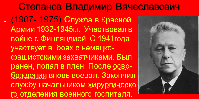 С 1945 по1973г.г. главный врач областной туб. больницы им. З.П.Соловьёва. Награды: орден Отечественной войны 1 степени, орден Красной звезды и пять медалей. В мирное время орден Ленина и медаль «За доблестный труд».