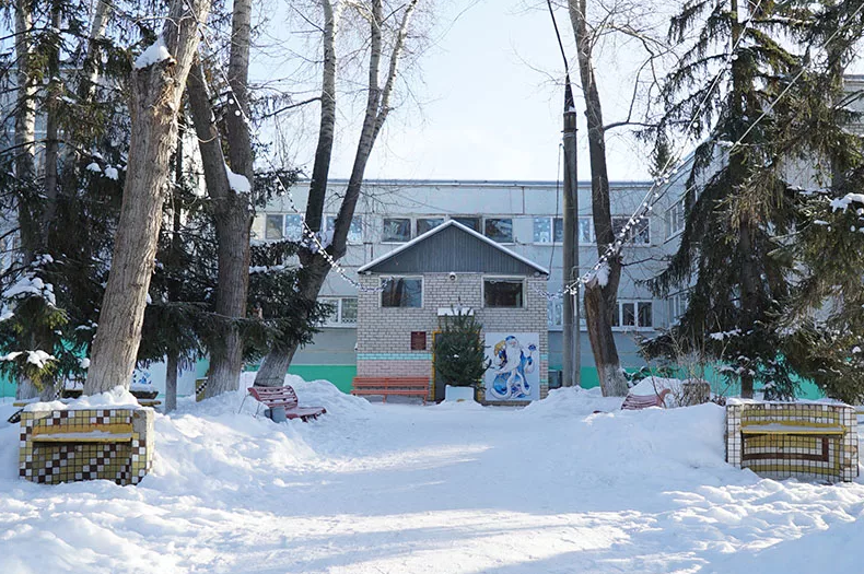 В детском санатоно- курортном отделении морозная зима также не мешает интересному досугу детей.